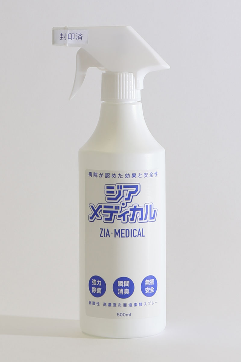 これまで広く除菌に使用されてきた「アルコール製剤」ですが、近年、耐性を持つ細菌・ウイルスが増加しており、その有効性に関する考え方に変化が見られます。このような流れを受けて、アルコール製剤では難しかった細菌・ウイルスへの除菌効果を期待できるとして、次亜塩素酸水溶液が注目されています。「ZIA・MEDICAL(ジア・メディカル)」は、次亜塩素酸ナトリウムに食品添加物酸性剤、水を加える特殊な混合技術を活用することで、高濃度でかつ安心して使用できる弱酸性の水溶液を安定的に生成することが可能となりました。また、生成された水溶液の安全性については、事業提携先である関東・北日本最大級の医療グループ「IMS グループ」監修のもと、検査機関で検査・立証されています。